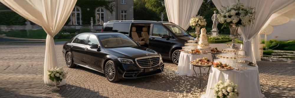 Transport des mariés et leurs proches vers la Villa Maldie. Transfert des convives à l’Hôtel Les Roches Blanches. Retour en toute sécurité après une soirée privée au Domaine de Canaille.